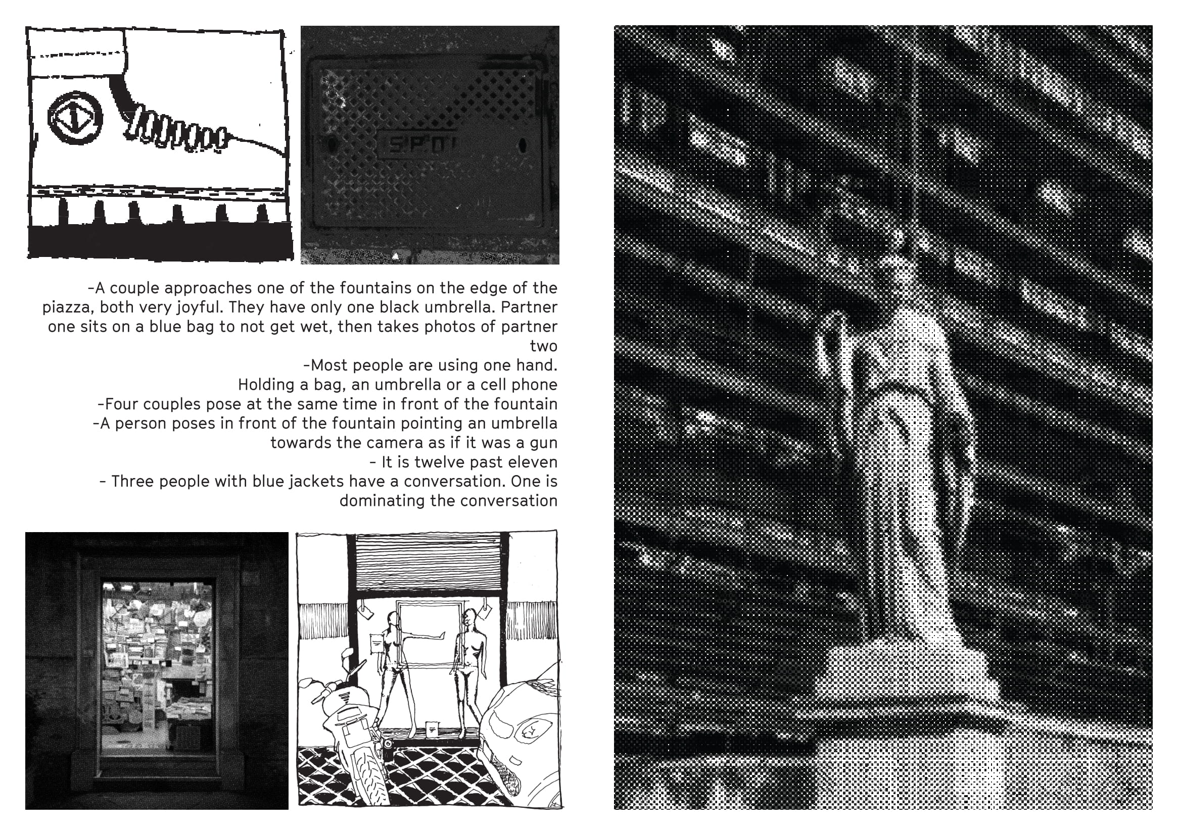 Inspired by Georges Perec’s An Attempt At Exhausting a Place in Paris the contents of this zine were created in the span of one afternoon. The segments of text perform as subtitles to the happenings of the place - sounds, colors and events. These are complemented by visuals in the form of drawings and photography.